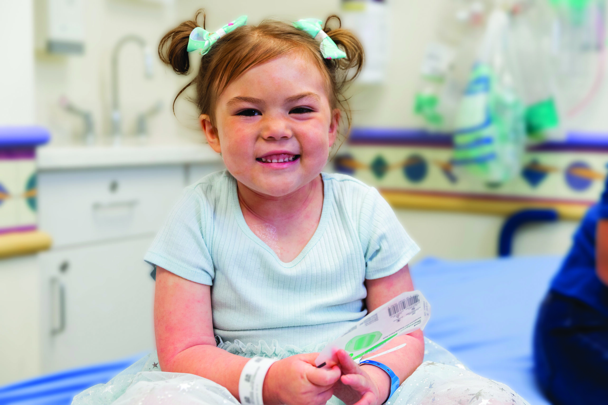 When four-year-old Mayia stopped using her right side, her parents were immediately concerned and took her to Children’s Mercy Kansas City. There, Mayia’s medical team discovered she had a tumor with two cysts pushing on the left side of her brain, interfering with her right-side mobility. The tumor, a metastatic ganglioglioma, proved too difficult to remove through brain surgery and did not respond to chemotherapy. Mayia’s doctor wanted to try a new drug combination, but the medications weren’t on the market yet. Her dedicated care team worked hard to petition the drug company and the FDA for approval. Once they were approved, Mayia could use the new medications as part of a research trial. Mayia’s tumor responded well to the treatment, and she finally started feeling like herself again. The FDA recently approved the drugs for public use, so Mayia and her family can now receive the prescriptions from the pharmacy. Mayia has been on the medications for over a year, and it’s fully halted her tumor growth! In another year, her care team will taper her off the medications and continue to monitor the tumor’s response. Today, she’s an outgoing six-year-old who loves playing outside, going on walks, and hanging out with her older brothers.