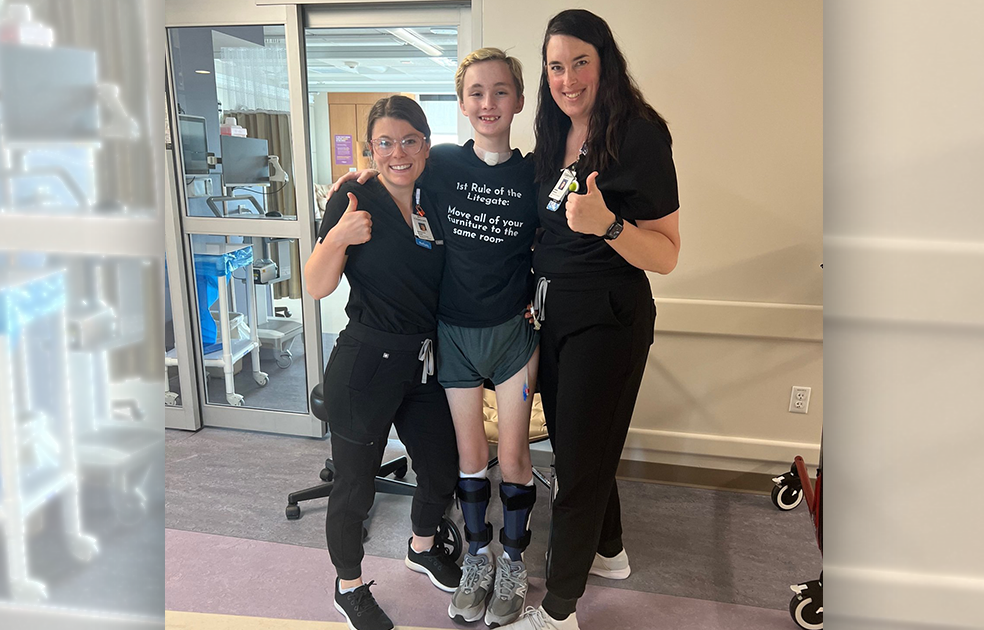 Kellen had always been an active, energetic kid, so when he started feeling under the weather, his family assumed it was just a mild bug. But as days passed, his condition worsened. He found himself making repeated trips to the ER, and on one terrifying morning, Kellen couldn’t stand up on his own. Through a severe blizzard, his family made the 220-mile trip to Children’s Minnesota-Minneapolis in an ambulance. Soon after he arrived, experts discovered that Kellen had a rare spinal cord condition called acute flaccid myelitis (AFM). AFM sets in very suddenly, weakening multiple muscles. He was rushed to the pediatric intensive care unit (PICU), where he required a ventilator, a tracheotomy, and a feeding tube. After eventually leaving the PICU, Kellen embarked on an intensive two-month journey with physical, occupational, and speech therapy programs. When he started, Kellen was only wiggling a few toes, but thanks to his hard work and supportive care team, he started eating and moving independently in just a few months. Once he was cleared from these programs, he continued less-intensive PT and OT to keep improving. Eight months after that first visit to Children’s Minnesota, Kellen’s progress is remarkable. He’s not only standing and walking again, but he’s also playing sports, something he was unsure would ever be possible again. Today, Kellen is back on the swim team, forever grateful for his life-saving care.